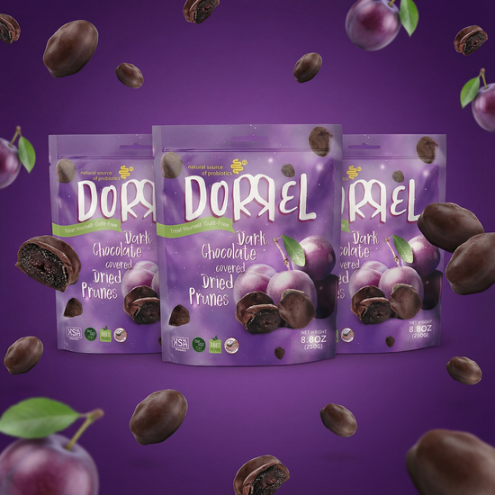 Indulge in the rich, luxurious taste of our Dorrel Dark Chocolate Covered Dried Prunes, a snack that's as nutritious as it is delicious.